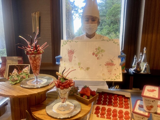 いちごパフェは「伊豆に来ていただく」「季節の味や伊豆の美味しいものを召し上がっていただきたい」とパティシエが想いを込め、昨シーズンに初めて販売いたしました。紅ほっぺの美味しさと、パフェの中のパティシエこだわりの手作りスイーツが大変好評をいただきました。
