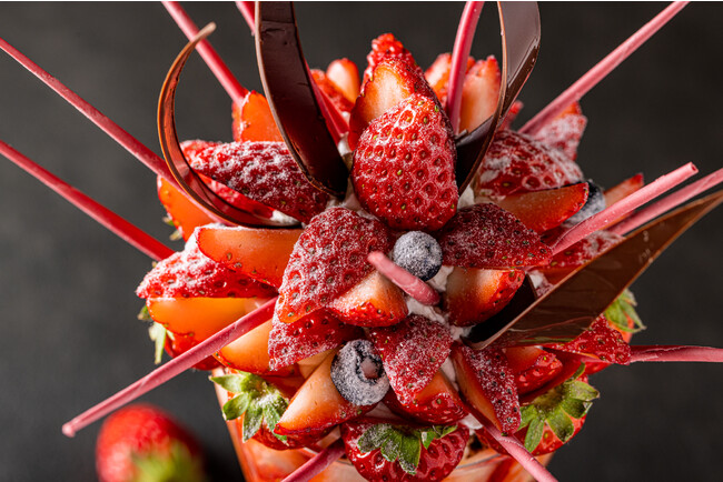 「伊豆産紅ほっぺのプレミアムいちごパフェ」は、サンゴをイメージしたアートなスペシャルパフェです。