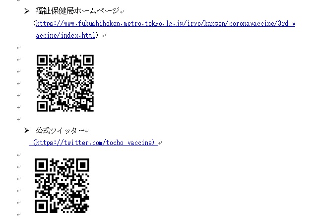 ワクチン接種会場の最新情報等は、福祉保健局ホームページ及び公式ツイッター「東京都設置 ワクチン大規模接種会場」でご確認下さい。