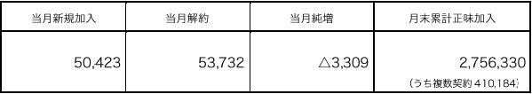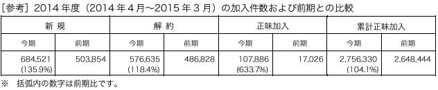 2015年3月の加入・解約と月末時点の加入件数につきまして、以下の通りお知らせ致します。