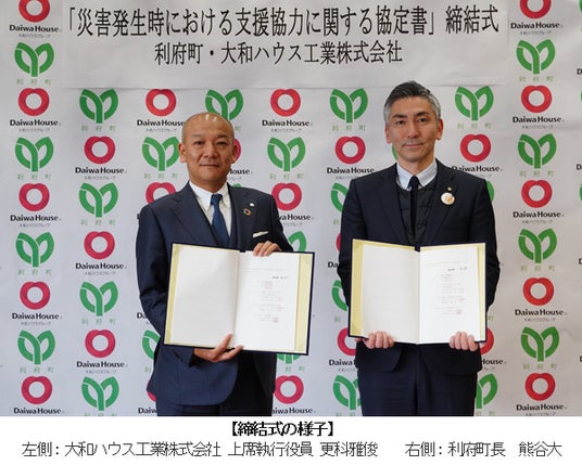 宮城県宮城郡利府町(町長:熊谷大(ゆたか)、以下「利府町」)と大和ハウス工業株式会社(本社:大阪市、社長:大友浩嗣、以下「大和ハウス工業」)は、本日(2026年4月15日)、「災害発生時における支援協力に関する協定書」を締結しました。