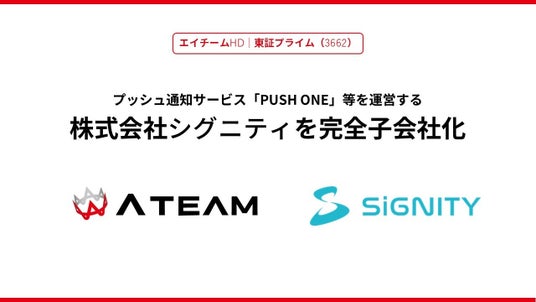 創造性と技術力で多様なITサービスを展開する株式会社エイチームホールディングスは(本社:愛知県名古屋市、代表取締役社長:林高生)は、2025年9月30日の取締役会において、プッシュ通知サービス「PUSH ONE」やプッシュ型広告サービス「スマホロック画面広告」を運営する株式会社シグニティ(本店所在地:東京都港区、代表取締役:須郷 智広、以下「シグニティ社」)の発行済株式の100%を取得し、連結子会社化することを決議いたしましたので、お知らせいたします。