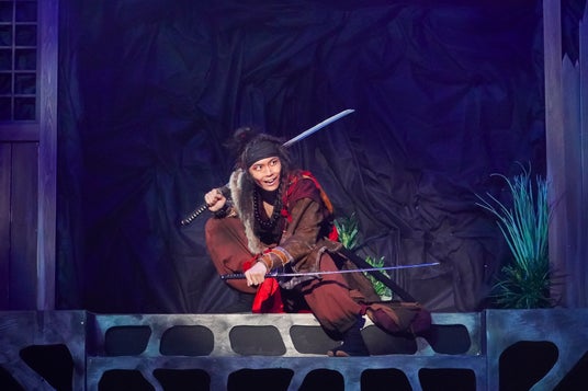 本作は、白狐丸について調べる少年(青木滉平)が、事情を知る盲の男(丸山正吾)を訪ねることからスタートする。冒頭から迫力あるアクションが繰り広げられ、これから始まる物語への期待を高めてくれた。アクロバットな動きとスピード感ある殺陣で魅せる白狐丸(川崎星輝)、力強くダイナミックな戦い方が爽快な外道丸(木村優良)、様々な武器を持って彼らを追い回す鬼狩りたち、正体は謎ながら共に只者ではない雰囲気を醸し出す少年と盲の男……と、それぞれキャラクターが立っている。