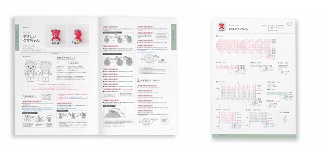 作品の参考写真を掲載し、手順を1段ごとにわかりやすく説明したオールカラー108ページのボリュームたっぷりの1冊です。また別冊の編み図ブックには、きほんの編み方と13種類の編み図を掲載し、糸を替えるポイントを見やすく色分けしています。また、「フェリシモ ハッピートイズプロジェクト」の歴史や編み物芸人:アイパー滝沢さんとのワークショップレポートも紹介し、読み物としても楽しめます。