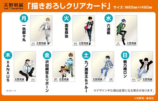 曜日替わりで天野明先生描きおろしイラストを使用したクリアカードをお渡しいたします。
