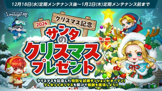 PCオンラインRPG「リネージュ」のモバイル版タイトル『Lineage M(以下、リネージュM)』のサービス、運営をしているエヌ・シー・ジャパン株式会社(本社:東京都港区、代表取締役:林 元基(イム ウォンキ)、以下エヌシージャパン)は、2024年12月18日(水)に、クリスマスイベントの開始、新たなシーズンパスの登場、および公式生放送の決定をお知らせします。