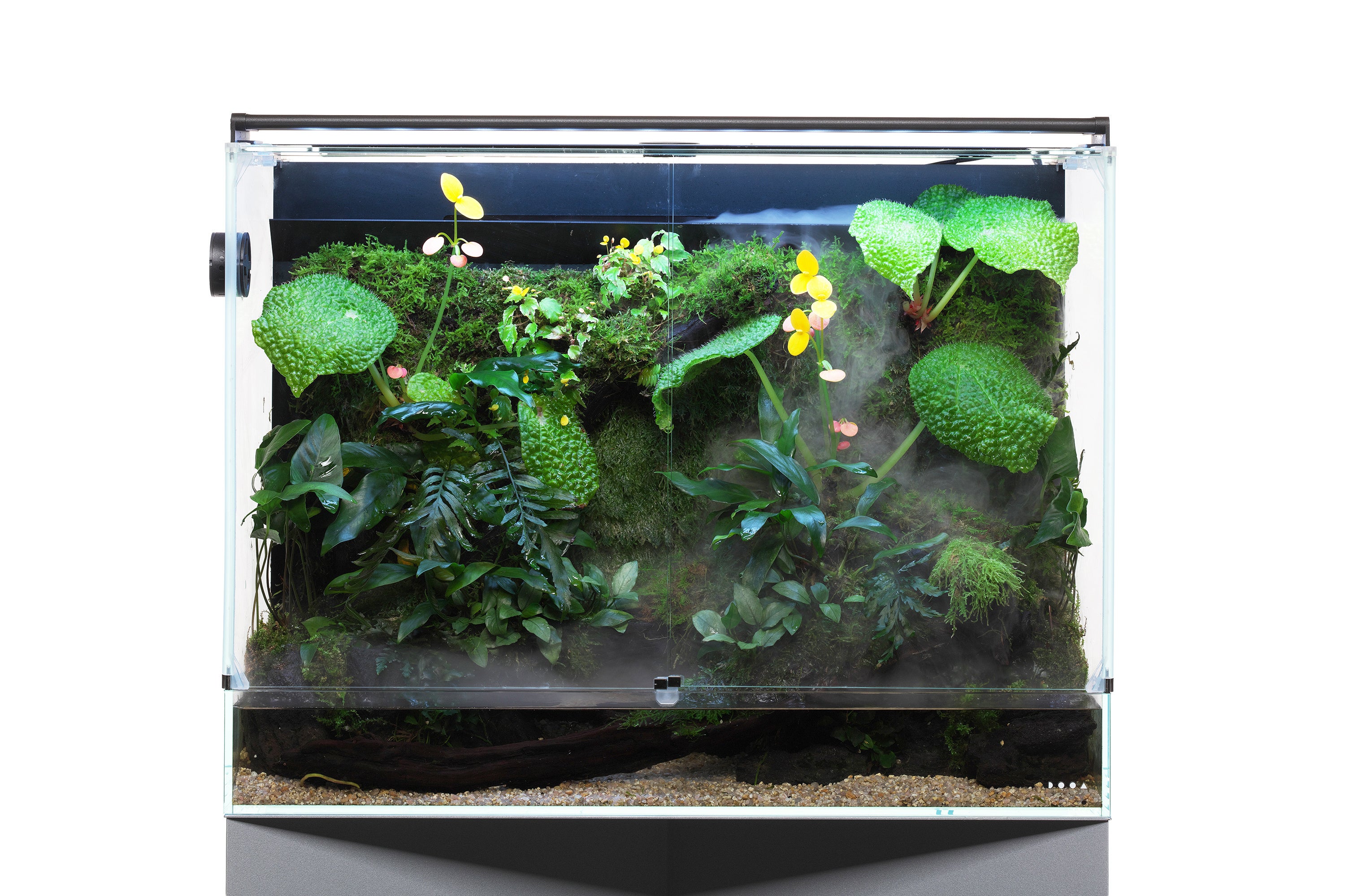花咲く、オーダーパルダリウム制作 システムパルダ300・レイアウト制作一式 363,000円、システムパルダ600・レイアウト制作一式 440,000円パルダリウムケージの中で花を咲かせる、熱帯性ベゴニア、小型着生ランなどを多用し、宝石蘭と呼ばれるジュエルオーキッドなどの人気の植物も使った、オーダーパルダリウム制作です。システムパルダの300サイズ、600サイズの2サイズからお選びいただけます。専用のLEDライト『パルダライト』を含めたシステム一式で、ご希望の場所に設置して制作を行います。