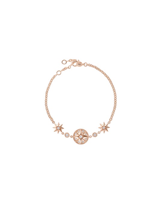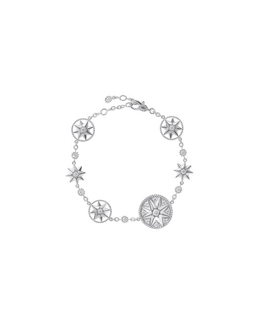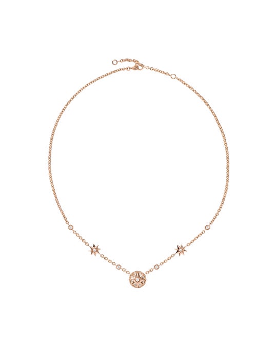 すべては、クリスチャン・ディオールが生まれたグランヴィルの生家「レ リュンブ」邸の庭園の装飾であり、幼少期のクチュリエを見守ってきたウィンドローズ(風配図)のモザイクから始まります。風配図はムッシュ ディオールを導き、クチュリエにとって内なるコンパスとなりました。同シンボルに着想を得たクリエイティブ ディレクターのヴィクトワール・ドゥ・カステラーヌは、常に肌身離さず身に着けていられるような比類なきジュエリーを生み出したのです。
