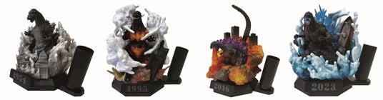 (左から)【DESKTOP MONSTER ゴジラ(1954)ペンスタンド】【DESKTOP MONSTER ゴジラ(1995)ペンスタンド】 【DESKTOP MONSTER ゴジラ(2016)ペンスタンド】【DESKTOP MONSTER ゴジラ(2023)ペンスタンド】各4,400円(税込)