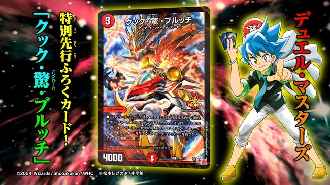 デュエル・マスターズからは、王道篇第2弾パック「カイザー・オブ・ハイパードラゴン」から特別先行収録の激強カード「クック・驚(アンビリーバ)・ブルッチ」が限定イラストver.で収録!