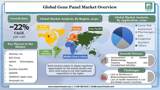 世界の遺伝子パネル市場は、2022-2030年の予測期間中に約22%のCAGRで成長すると推定されています。