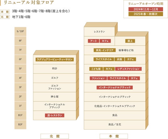 各フロアのリニューアルオープン日、展開ブランドの公開は10月上旬を予定しています。