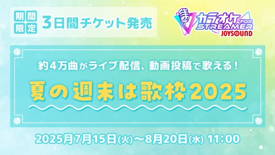 株式会社エクシング(本社:名古屋市瑞穂区、代表取締役社長:水谷 靖)は、ライブ配信・動画投稿者(STREAMER)をターゲットとした個人向け本格カラオケサービス「カラオケJOYSOUND for STREAMER」において、より気軽に歌枠を始めていただけるよう、3日間1,500円(税込)でご利用いただけるチケットを、2025年7月15日(火)から8月20日(火)までの期間限定で販売します。