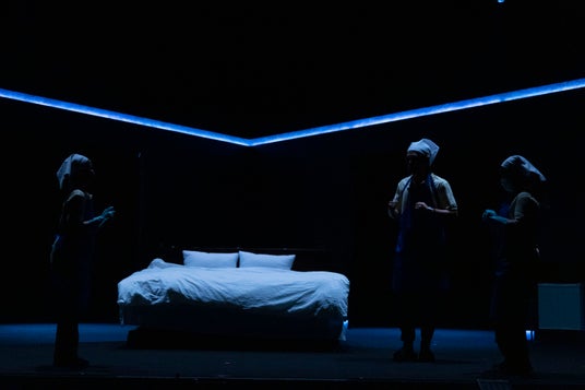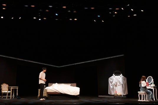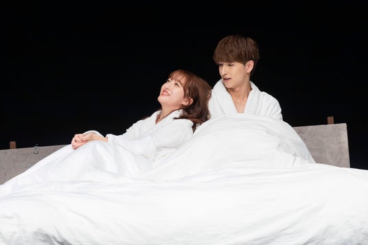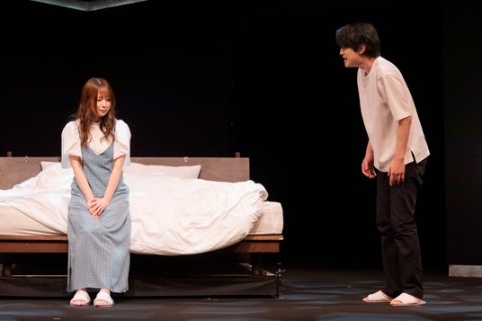 この日公開されたゲネプロでは、A「既婚者のお笑い芸人男×その相方のお笑い芸人男」(出演:山形匠、松本享恭)、C「お笑い芸人の妻×男への恋を諦めた女」(出演:夏目愛海、日比美思)、B「不倫している夫×離婚を決めた妻」(出演:松村優、高柳明音)、E「カモ男×ツツモタセ女」(出演:柊木智貴、田島芽瑠)の4つが上演された。本当の気持ちが隠せない最小単位の場所、それが2人きりの寝室。あるのはベッドと、「事後」の2人。一体この2人はどんな関係性なのか?この後の2人はどこに向かっていくのか?これはコメディなのか?はたまたサスペンスなのか?さまざまな関係性の2人に焦点を当て、寝室の中の会話で展開する超個室会話劇。舞台はラブホテルや旅館などいろいろと転換するが、真ん中にはいつもベッドがおいてある。本作では、6つのオリジナルエピソードとして、どこかで見聞きしたことのあるような、もしくは「こんなことありそうだな」と想像できるような、リアリティのある会話が繰り広げられる。劇中では荒唐無稽な出来事は起きず、ただただ“日常”を描いていて、まさに会話中心の舞台だが、それゆえに観客はセリフの意図を汲んだり、行動の一つ一つの意味を読み取ろうとしたりと深く登場人物たちの心理を楽しめる。また、エピソード同士で“繋がり”があるのが面白く、観る順番によってもだいぶ受け取るものが変わりそうなのも魅力的。1度と言わず、2度3度とリピートしたくなる。通常公演の上演時間は約1時間45分(途中休憩なし)で、6つのエピソードから4つのエピソードを日替わりで上演。7月8日(月)の千秋楽公演では全6エピソードを上演する。普段ならば絶対に聞くことのない、他人の“ピロトーク”から生まれる演劇をたっぷりと堪能してほしい。取材・文:五月女菜穂 撮影:GEKKO