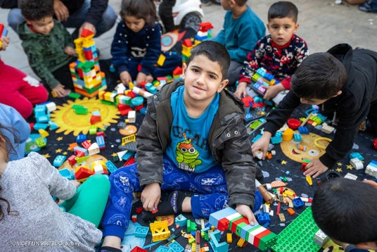 ベイルートの避難所となっている学校で、ユニセフが提供したおもちゃで遊ぶ10歳のアミールさん(レバノン、2026年3月17日撮影) (C) UNICEF/UNI964784/Choufany