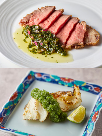 また、スイーツとともに楽しむお食事には、パクチーとハラペーニョのソースで味わう「ローストビーフ」や「カリフラワーのババロア 蛤と豆野菜のコンソメジュレ」「鱸塩焼新緑卸し掛け」など、和洋の本格的なブッフェ料理が並ぶほか、併設のバーカウンターでは新緑をイメージした爽やかなフレーバーを含むノンアルコールカクテルもお楽しみいただけます。