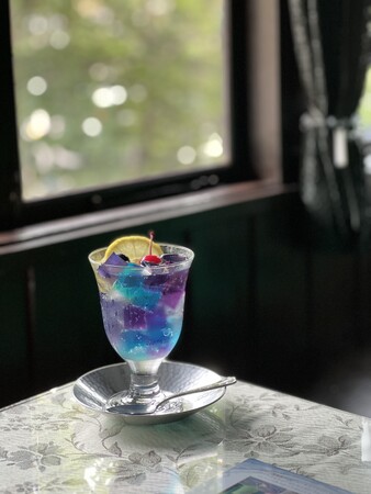 昭和のレトロな雰囲気が漂う空間と見た目も楽しいゼリーメニューで、女性に人気の京都にある<喫茶 ソワレ>がイートインへ出店します。まるで宝石のようにきらきらと魅惑的でカラフルなゼリーポンチは、店名の「ソワレ(夜会)」をイメージした、<喫茶 ソワレ>本店でも年に数回限りの特別メニュー。今回は、爽やかな甘さが特徴の柑橘「はるか」を使用した限定バージョンとなります。
