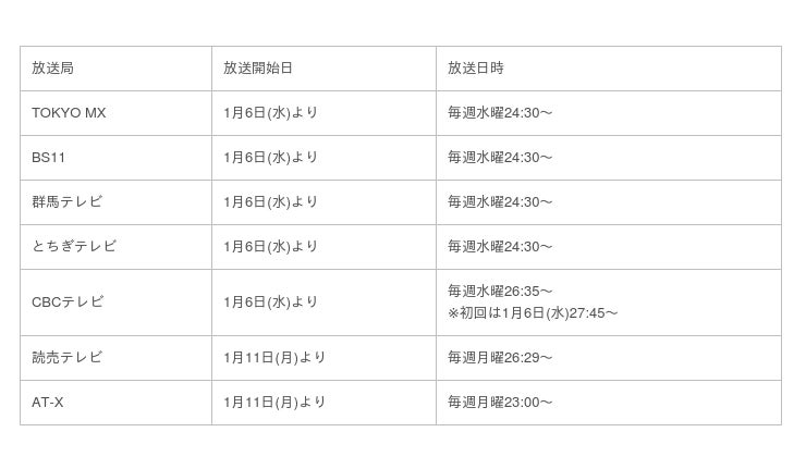 また、1月11日(月)より毎週月曜23:00~AT-Xでの放送も決定いたしました。