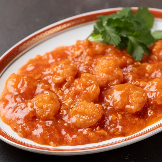 <菰田欣也 監修>乾焼蝦仁菰田欣也シェフ監修のエビチリソースです。香味野菜と、熟成期間の若い豆板醤を使用し、仕上げに卵とダイストマトを加えることで、辛すぎず、マイルドな仕上がりになっています。