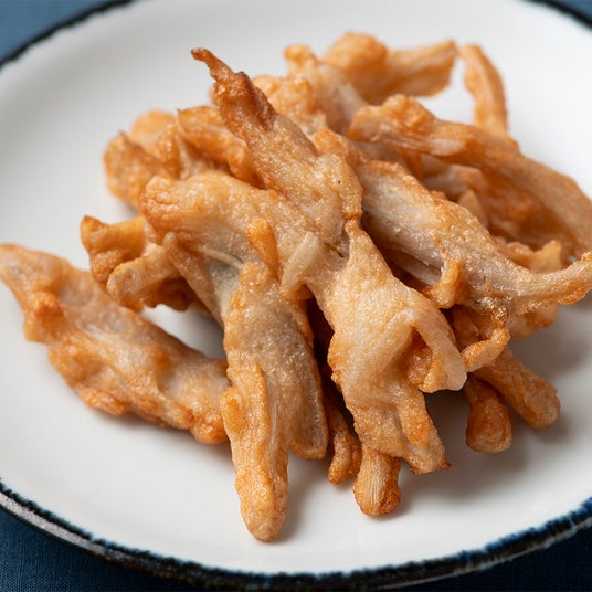 <貴千>ごぼうスティック揚げごぼうの土臭さをなくすため、一晩白だしに漬けてから使用しています。なめらかで程よい弾力のあるすり身と合わせ一つ一つ手でちぎって揚げています。食べやすくおつまみに最適です。