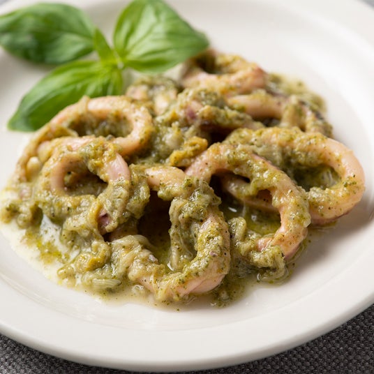 <ふらんす屋>いかと長ネギのバジルマリネ柔らかくボイルしたイカのマリネ。ほどよい酸味の中にバジルの奥深い香りが際立ちます。クラッカーにのせてカナッペや、パスタの具材としてもおいしくいただけます。