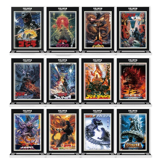 ・【大阪会場新商品】劇場ポスター風アクリルスタンド 昭和シリーズ(全12種ランダム)税込1,100円 /日比谷会場で好評を博した「劇場ポスター風アクリルスタンド」の昭和シリーズが登場です。 告知ポスター風にディスプレイできるフレームの文字は、レトロな書体で「只今上映中」になっています。