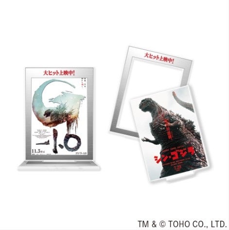 ・(右)【大阪会場新商品】劇場ポスター風アクリルスタンド シン・ゴジラ 税込1,100円 /日比谷会場で好評を博した「劇場ポスター風アクリルスタンド」のシン・ゴジラ版。 ・(左)【大阪会場新商品】劇場ポスター風アクリルスタンド ゴジラ-1.0 税込1,100円 /日比谷会場で好評を博した「劇場ポスター風アクリルスタンド」のゴジラ-1.0版。