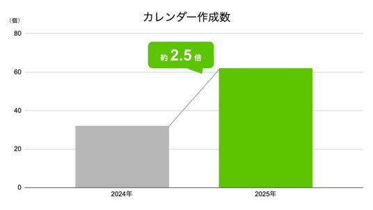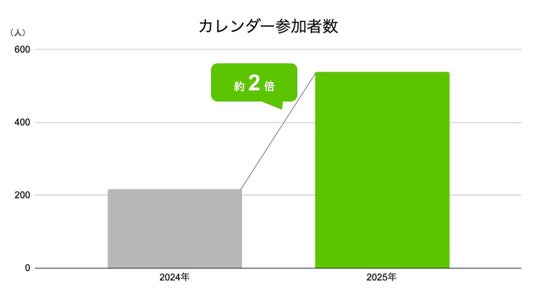 「AI・機械学習・データサイエンス」のカレンダー参加者数が539名(昨対比約2倍)、カレンダー作成数が62個(昨対比約2.5倍)と大幅に増加