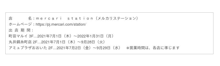 株式会社丸井(本社:東京都中野区、代表取締役社長:青野 真博、以下丸井)は、町田マルイ、丸井錦糸町店の2店舗で、7月1日(木)より、株式会社メルカリ(本社:東京都港区、代表取締役CEO:山田 進太郎)が運営するフリマアプリ「メルカリ」の体験ストア「メルカリステーション」を期間限定で出店します。また、7月2日(金)には2店舗目の外部施設出店として、アミュプラザおおいた(大分県大分市)への期間限定で出店します。