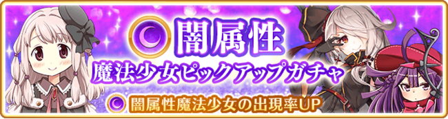 『闇属性魔法少女 ピックアップガチャ』では下記ピックアップ対象の魔法少女の提供割合がアップしております。