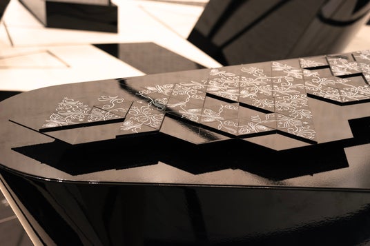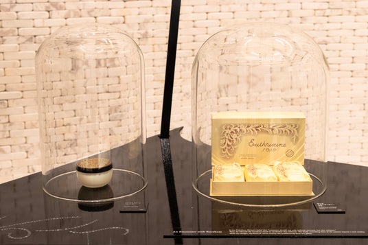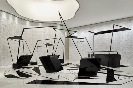 エントランス空間は銀座ビルの床に当初から施されていた唐草文様から枝葉を伸ばすように立体的に立ち上げた、生命美を表現したデザインになっています。唐草形状の台上には唐草をあしらった資生堂のヘリテージや、パズルのように唐草を自分の手で繋いでいく展示が並び、受け継がれてきた資生堂の美意識を感じることができます。