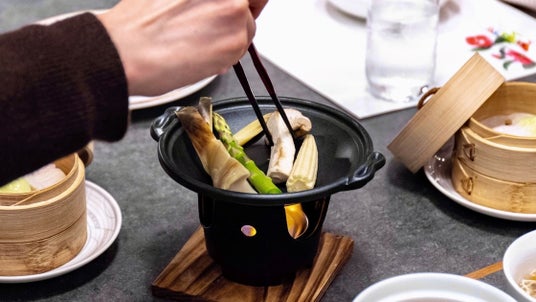 レストラン「天外天」では、春に旬を迎えるタケノコや地元野菜を陶板焼きでお楽しみいただける中国料理のディナーコースをご用意。目の前で焼く野菜の音や香りでお子さまの「食」への興味・関心を高めるきっかけづくりをご提供いたします。