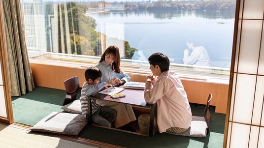 自然と触れあいながら、お子さまの好奇心や学びへの探求心を育む、親子で学べる宿泊プランをご用意いたしました。客室内には鳥類図鑑とスケッチブック、クレヨンや貸し出しの双眼鏡などをご用意。自然に囲まれた場所に位置する掬水亭から徒歩約10分で向かうことのできる「都立狭山公園*1」や「多摩湖」にて、里山の風景と季節の草花、野鳥が子育てをしている様子など、親子でネイチャーウォッチングをご体験いただけます。