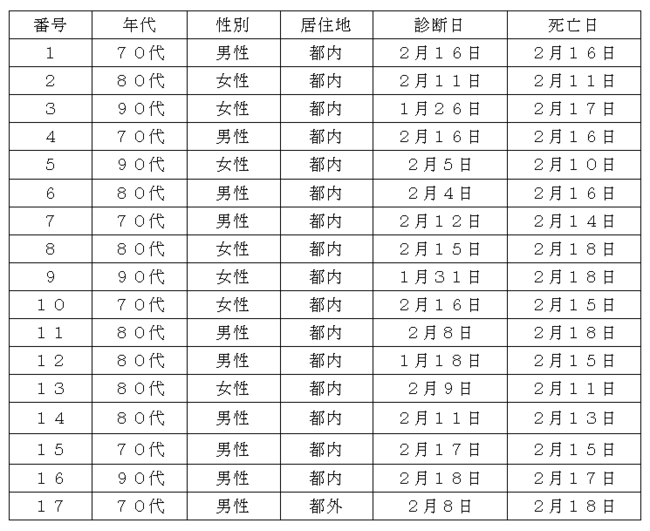 都内で新型コロナウイルスに感染した方が死亡されましたのでお知らせします。