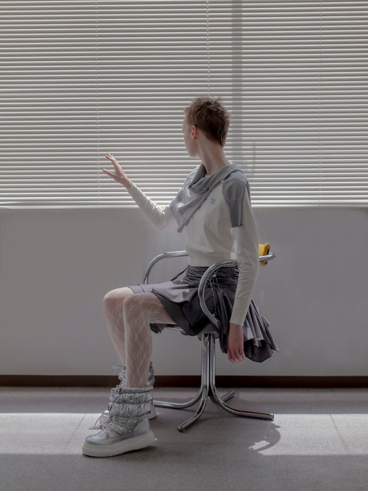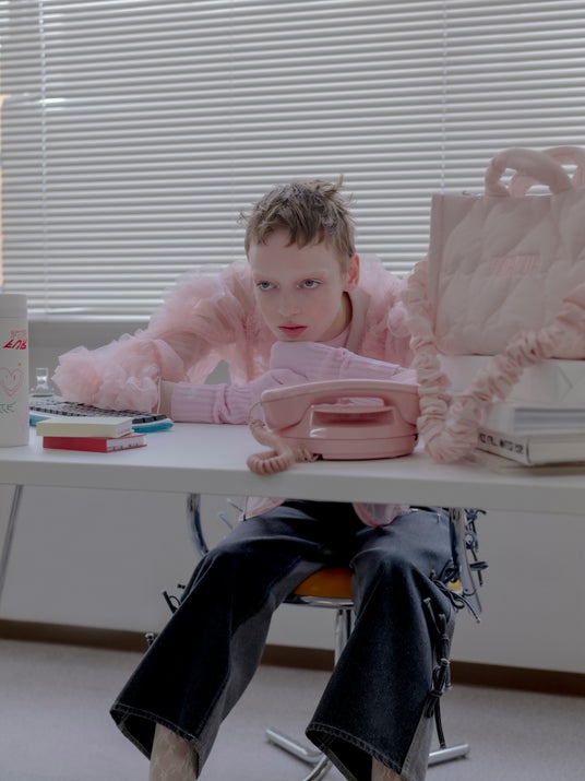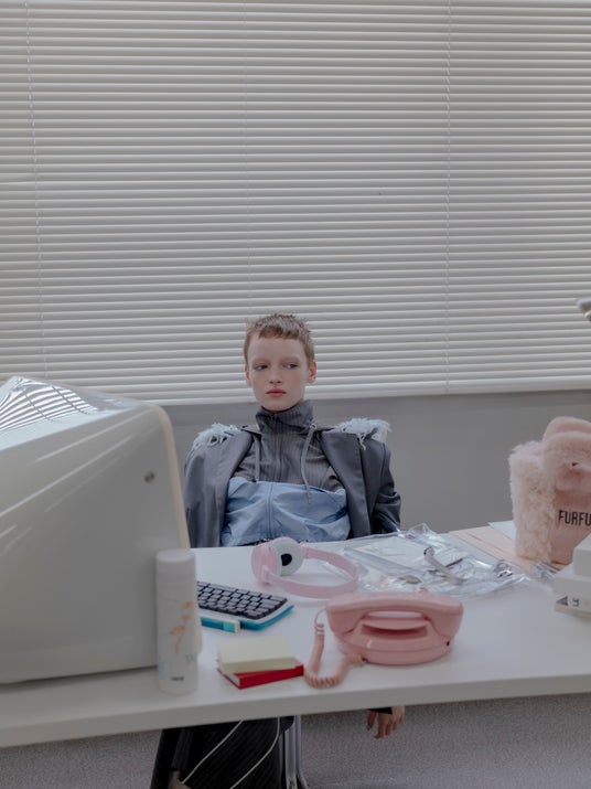 オフィスを舞台に2000年代初頭を思わせる「Gen X soft club」のムードを表現し、ノスタルジックなフェミニンモードに昇華した2024年秋コレクション
