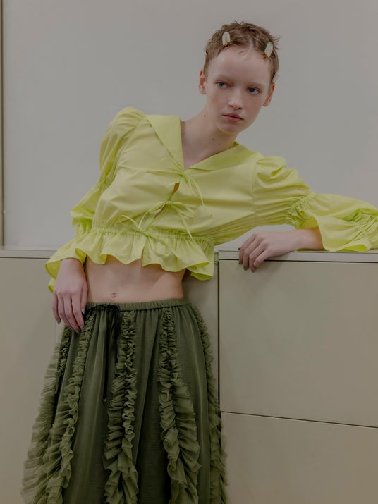 惜しみなく散りばめられたリボンやコケティッシュなシアーアイテム。