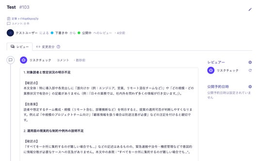 - リスクチェック: 誤解を招く表現や公開前に気をつけたいリスクを重点的に見る