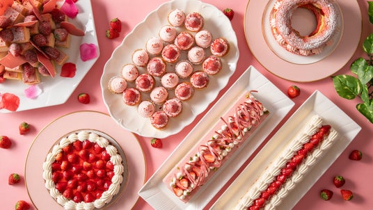 敷き詰められた苺がまるで輝く宝石のような“苺のタルト”や、サクサクしたタルト生地としっとりした苺のクリームが絶妙な“苺のパリブレスト”など、目にも華やかなスイーツを20種類以上ご用意。また、パティシエが目の前で絞りたてを提供する“苺のモンブラン風ミニパフェ”、提供直前にソースと絡めてアイスクリームを添える“苺のフレンチトースト”など、出来立てだからこそ楽しめるスイーツのライブ演出も見どころの一つ。