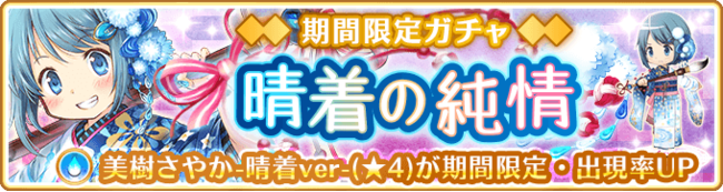 『期間限定ガチャ 晴着の魔法少女』『期間限定ガチャ 晴着の調整屋さん』『期間限定ガチャ 晴着の純情』を開始いたしました。