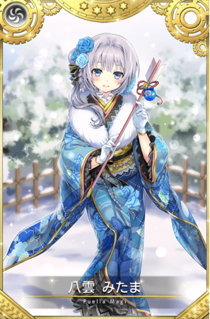 本ガチャより、魔法少女「八雲みたま 晴着ver.(CV.堀江由衣)」とメモリア「屋台パラダイス」「新年会の給仕係」が期間限定で登場いたしました。