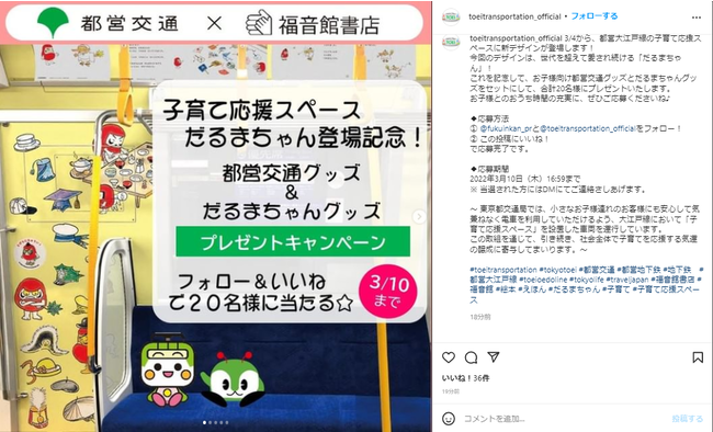 東京都交通局公式Instagram上にて、プレゼントキャンペーンを実施。