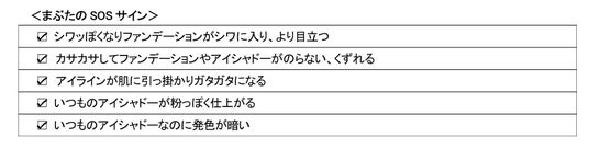もし、あなたも下記のような現象を感じ始めたら、それは秋冬の乾燥ダメージを受けたまぶたからのSOSサインです。この現象が出たら、すぐにまぶたケアを行いましょう。