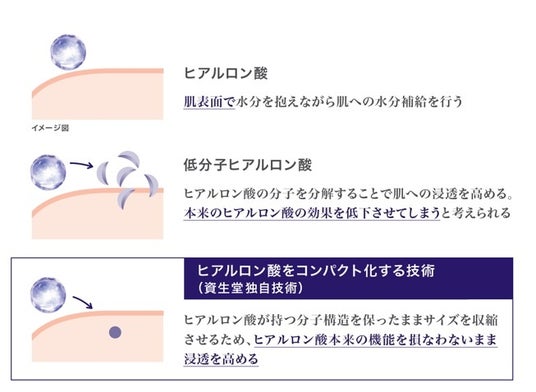 多くの水分を保ったまま角層内部へ届けることを可能にした「ヒアルロン酸をコンパクト化する技術」