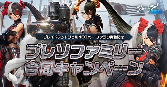 「ブレイドアンドソウル」シリーズでお馴染みのキャラクター「ポー・ファラン」のブレイドアンドソウルNEO登場を記念して「ブレソファミリー合同キャンペーン」を開催中です。