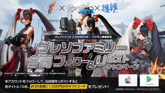 エヌ・シー・ジャパン株式会社(本社:東京都港区、代表取締役:林 元基(イム ウォンキ)、以下エヌシージャパン)は、2025年4月9日(水)に、PCオンラインゲーム『ブレイドアンドソウル』のリメイク作品となる『ブレイドアンドソウルNEO』にて、「ブレソファミリー合同キャンペーン」の開始をお知らせします。