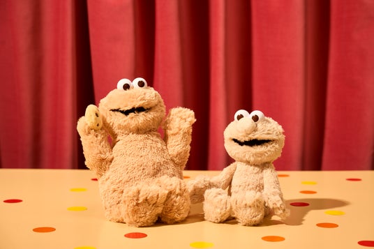 クッキーモンスターのぬいぐるみは、いつも食べている大好きなチョコチップクッキーにそっくりな、少し濃い目のベージュカラーに。