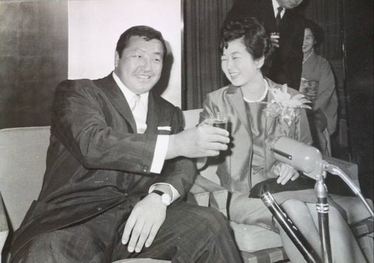 1963年1月7日ホテルニュージャパンで行われた婚約会見 田中敬子氏提供