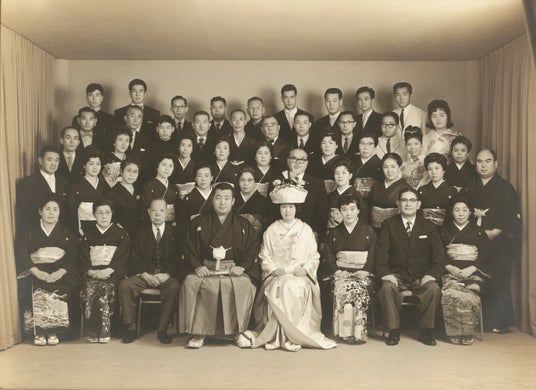 披露宴当日に撮影された田中家親族・関係者の集合写真 田中敬子氏提供