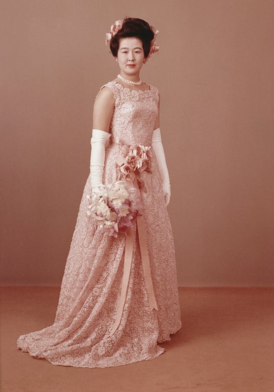 疲労円当日、イブニングドレス姿の啓子 田中敬子氏提供
