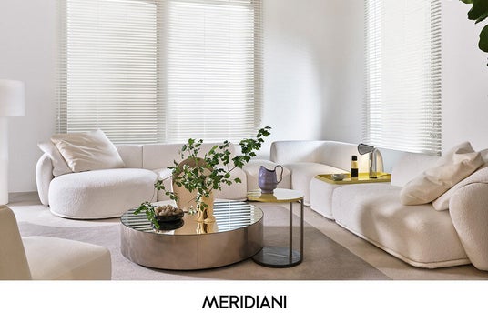 ピュアで洗練されたフォルムに、良質なテクスチャーを纏うことで、リラックス感のあるラグジュアリーな空間を提案。<メリディアーニ>のキーワードである「クワイエット・ラグジュアリー」を表現した展示となっております。落ち着いた静寂の中にある優雅さをご体感ください。